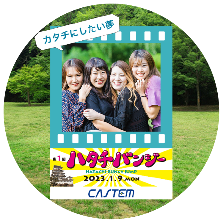 バンジージャンプの原点となったのは、バヌアツ共和国ペンテコスト島における成人の儀式「ナゴール」だと言われています。神秘的な儀式を目の当たりにし、スポーツとして成立させたものがバンジージャンプのはじまり。 今回のイベント「ハタチバンジー」では、新成人の方に、発表されたテーマに沿った想いを叫び、バンジージャンプをしていただきます! ハタチバンジーは、クレーンで吊り上げたゴンドラからジャンプ!高さは福山城の天守閣と同じ高さ、約26mに合わせるのでまるで福山城から飛んでいるよう!お城でのバンジージャンプは全国初!一生に一度のハタチの思い出に、ハタチバンジーをやってみませんか!
